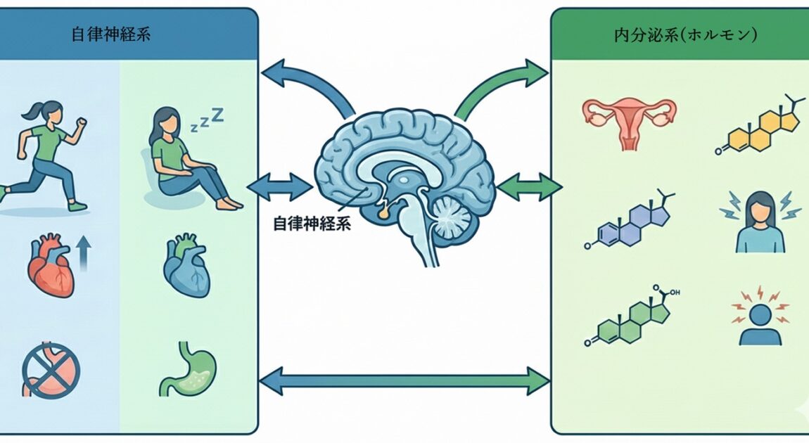 女性の体は、一生を通じてホルモンの繊細な波の中で生きています。特に、ストレス、生活習慣の変化、年齢といった要因が引き金となり、このバランスが崩れると、心と体にさまざまなサインが現れ始めます。そのサインの正体である「ホルモンバランスの乱れ」と、それをコントロールする「自律神経」の関係に焦点を当て、不調の根本原因を紐解いていきます。