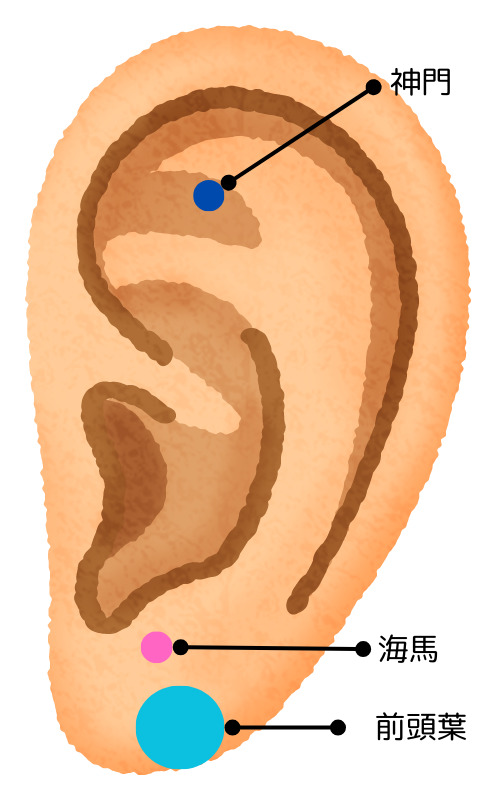 • 神門(しんもん)のツボ:精神的な安定と安心感をもたらす、最も重要なポイントの一つです。耳の上部のY字軟骨のくぼみの間にあります。不安やイライラ、混乱が見られるときに、ここを優しく押してあげることで、スーッと心が落ち着くのを助けます。