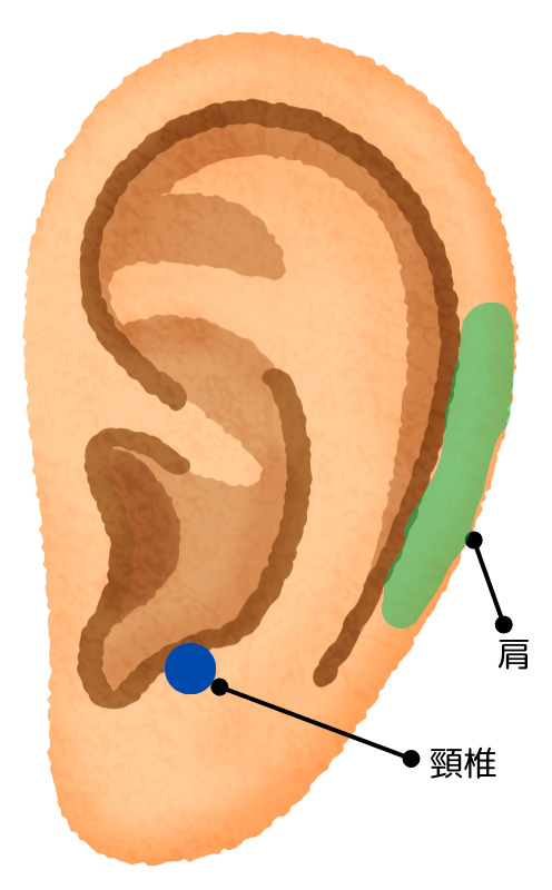 肩こりに効果的なツボは、主に耳の中央から上部の軟骨部分に集中しています。