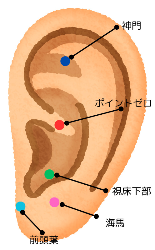 耳には多くの反射点がありますが、特にうつ病や不安、不眠といったメンタル不調の改善に重要なポイントが存在します。